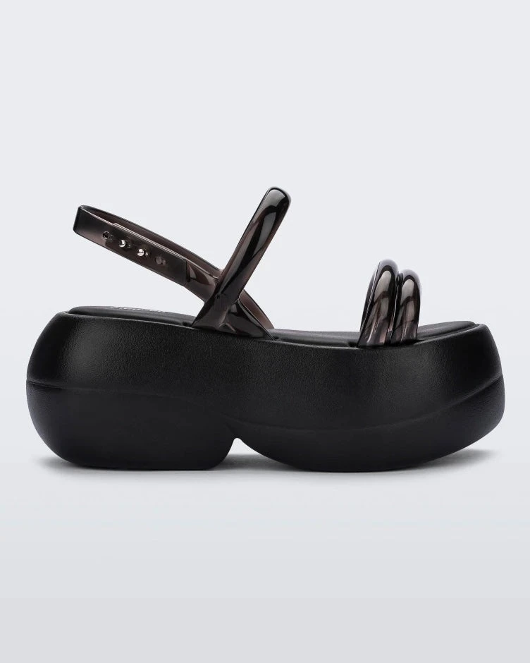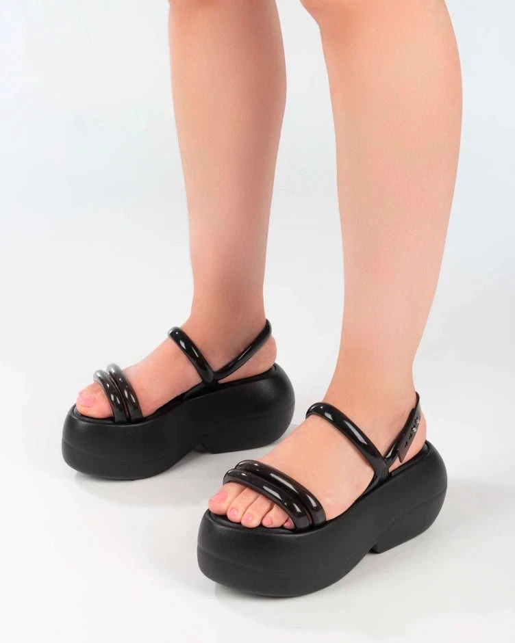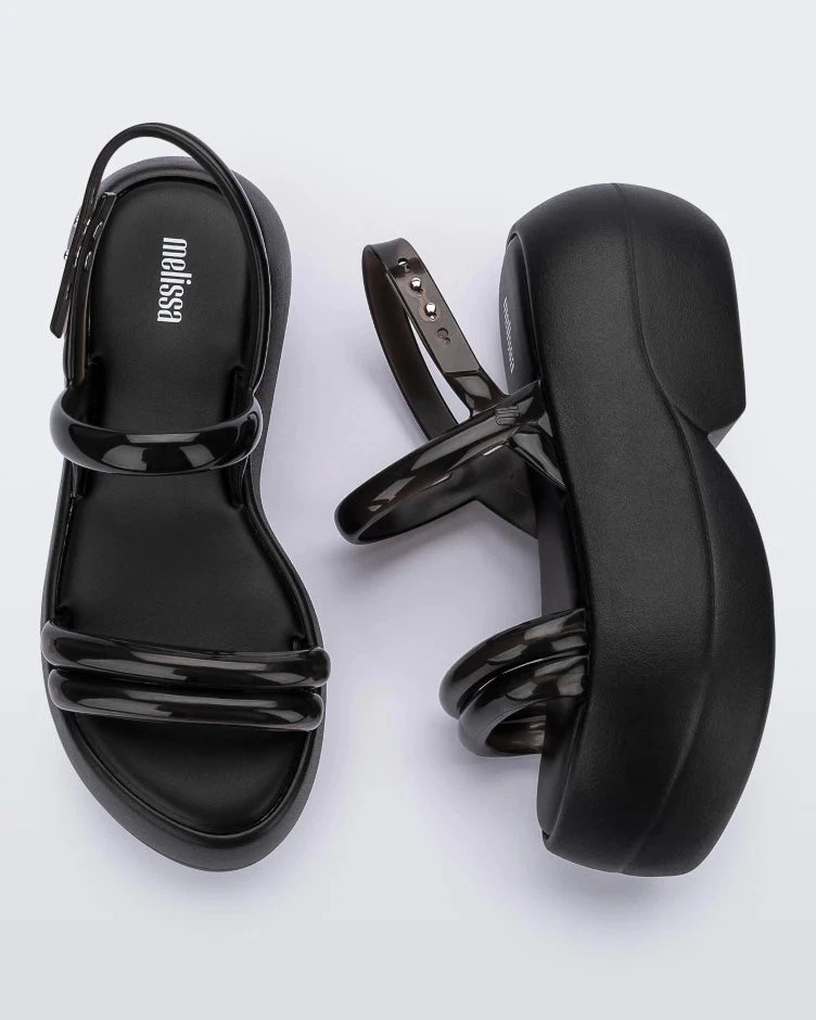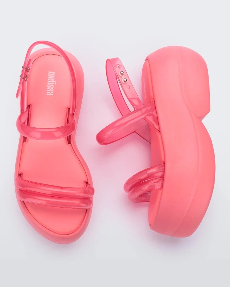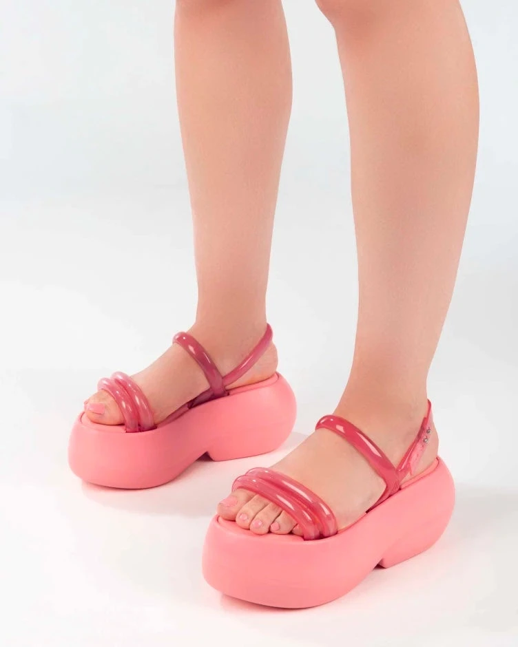 Bringing the purest Melissa DNA, the Melissa Airbubble collection represents expression and attitude. The Airbubble Platform works with volumes and tubular shapes, without neglecting Melissa’s characteristic transparency. With an injected EVA sole, Grenflex insole, Melflex upper and pin closure, it guarantees plenty of comfort for any occasion.