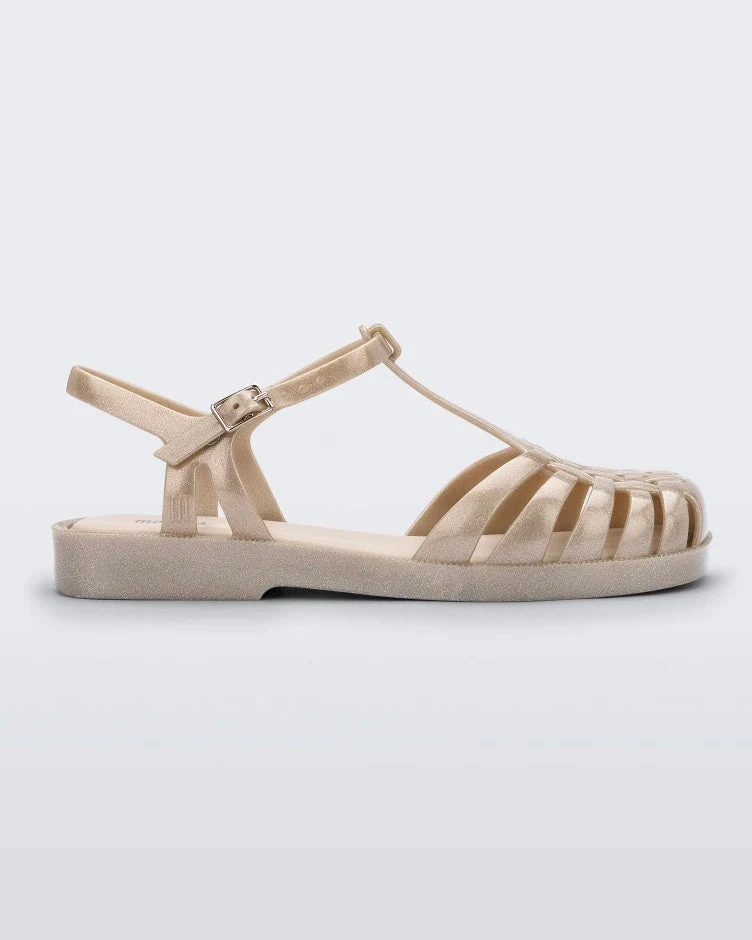 The Melissa Aranha Squared is back and it’s even more exciting. The traditional Aranha model is available in pretty color options, notably those with a glossy finish or glitter. It fastens around the ankle with a buckle and has a comfortable Grenflex insole. Super stylish, this classic Melissa is perfect for a fun look that is still comfortable.