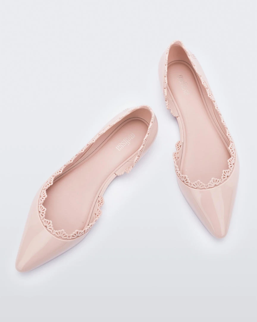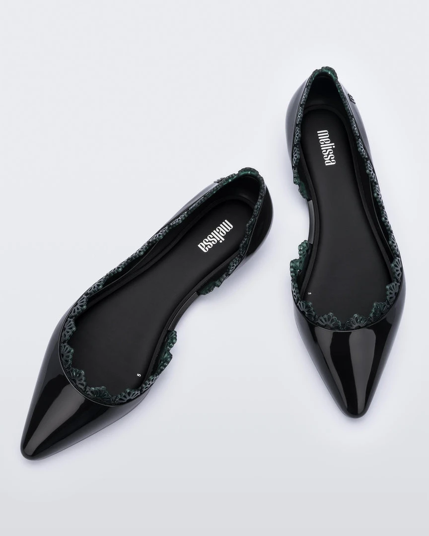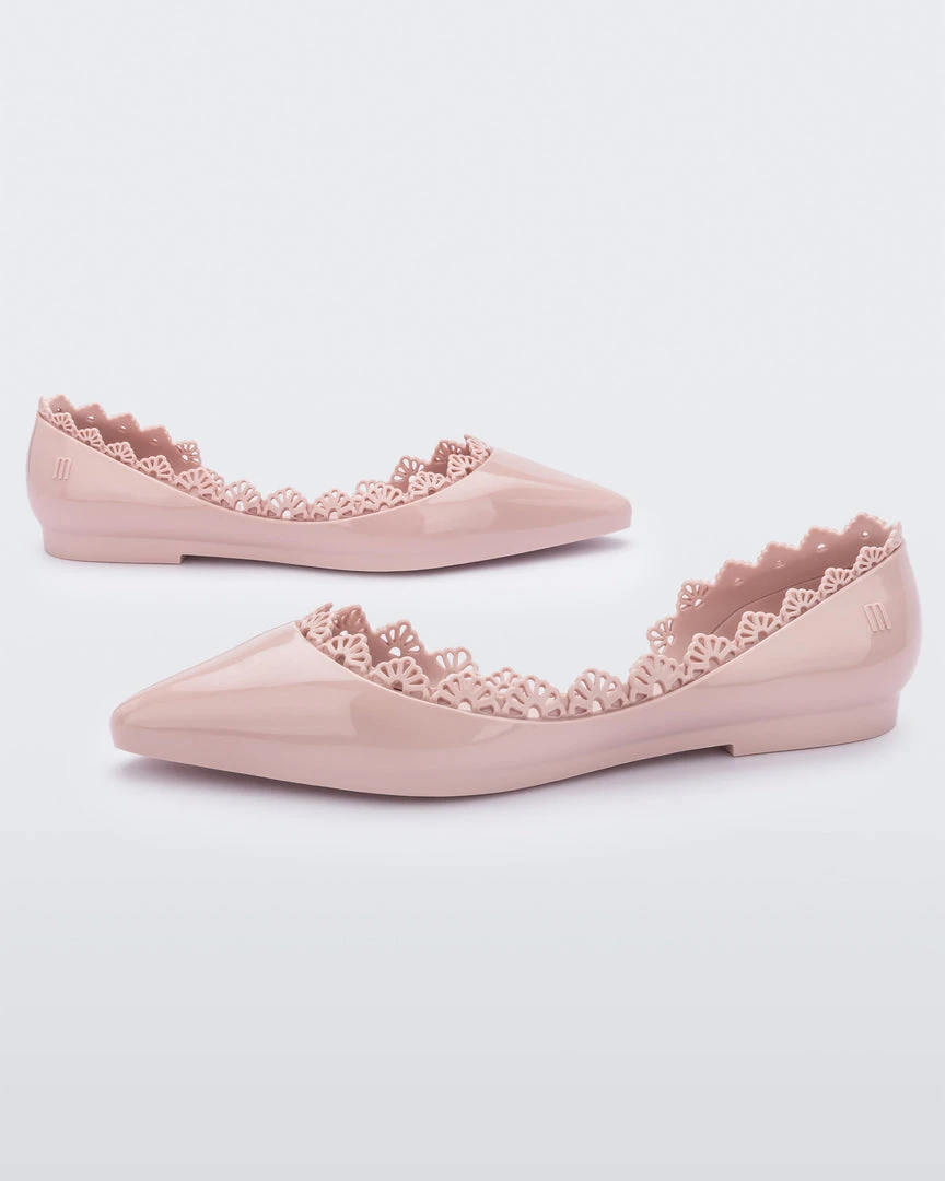 A feminine, delicate and authentic mood using full plastic lace is what inspired the new Melissa Cleo II. The trend is based on the feminine scene and all the delicacy and sensibility linked to this universe. The lace, a classic trim in fashion, is reworked with a modern and stylish touch. The shoe, with its pointed toe and winding cut-outs, is back in a new version with a lace finish all around the border.