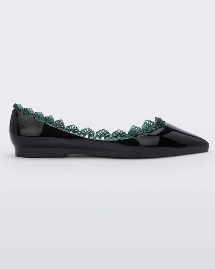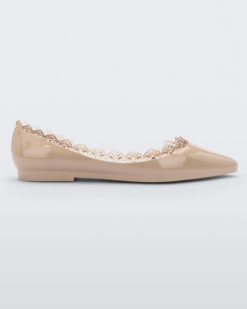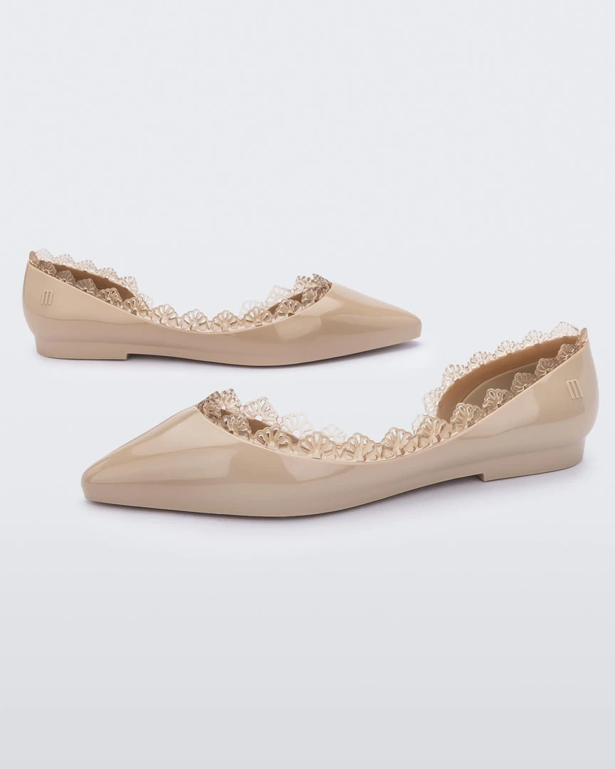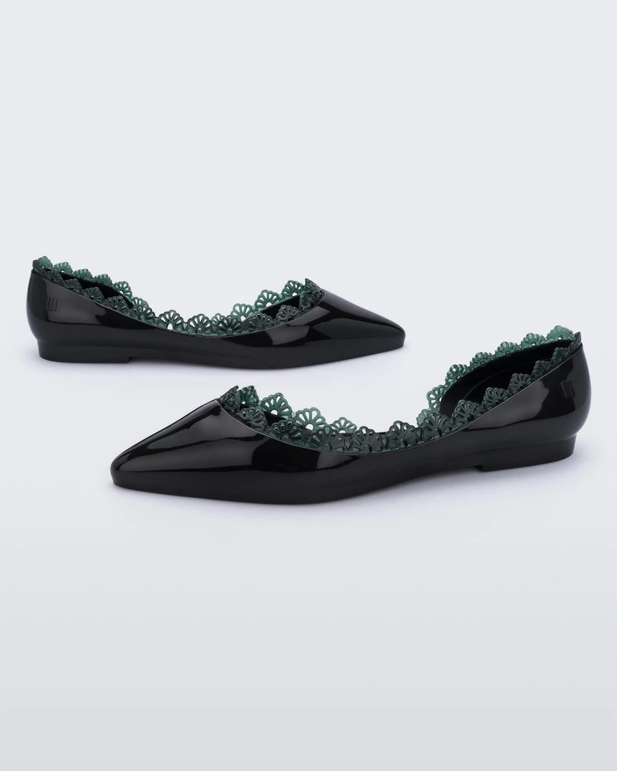 A feminine, delicate and authentic mood using full plastic lace is what inspired the new Melissa Cleo II. The trend is based on the feminine scene and all the delicacy and sensibility linked to this universe. The lace, a classic trim in fashion, is reworked with a modern and stylish touch. The shoe, with its pointed toe and winding cut-outs, is back in a new version with a lace finish all around the border.