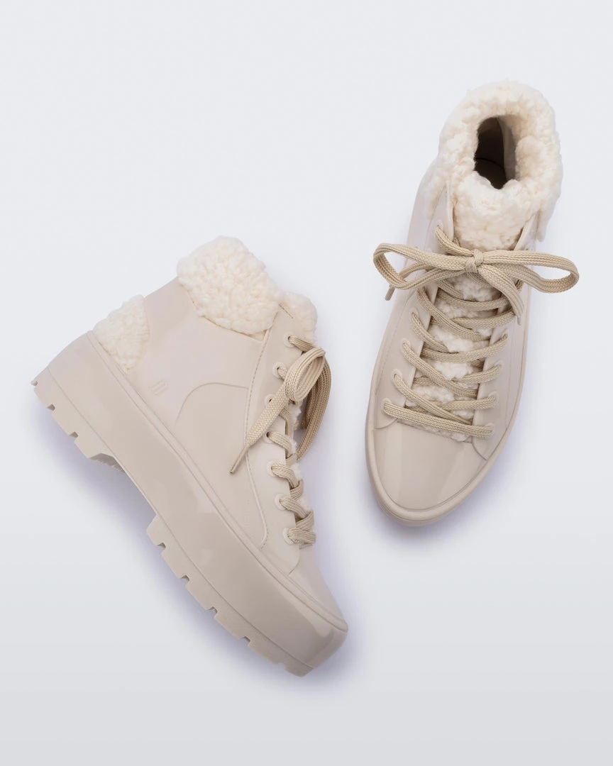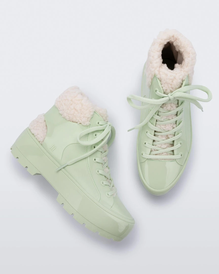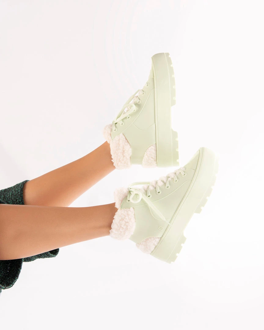 During the last year our routines and habits have changed considerably. We have learned to make our house our world and with that, prioritising well-being and comfort has become crucial. In Melissa’s universe that comfort has become the backdrop for innovations in shapes, colours and above all in finishes and textures. This has given rise to new models: say hello to the Fluffy family, your new favourite companion. The new models embody comfort and come with an innovative mix between Melissa’s plastic identity + vegan faux fur. The models come in a range of candy colours that are light yet sophisticated, while the classic variations continue being a style wildcard. Perfect for wearing at home and out.