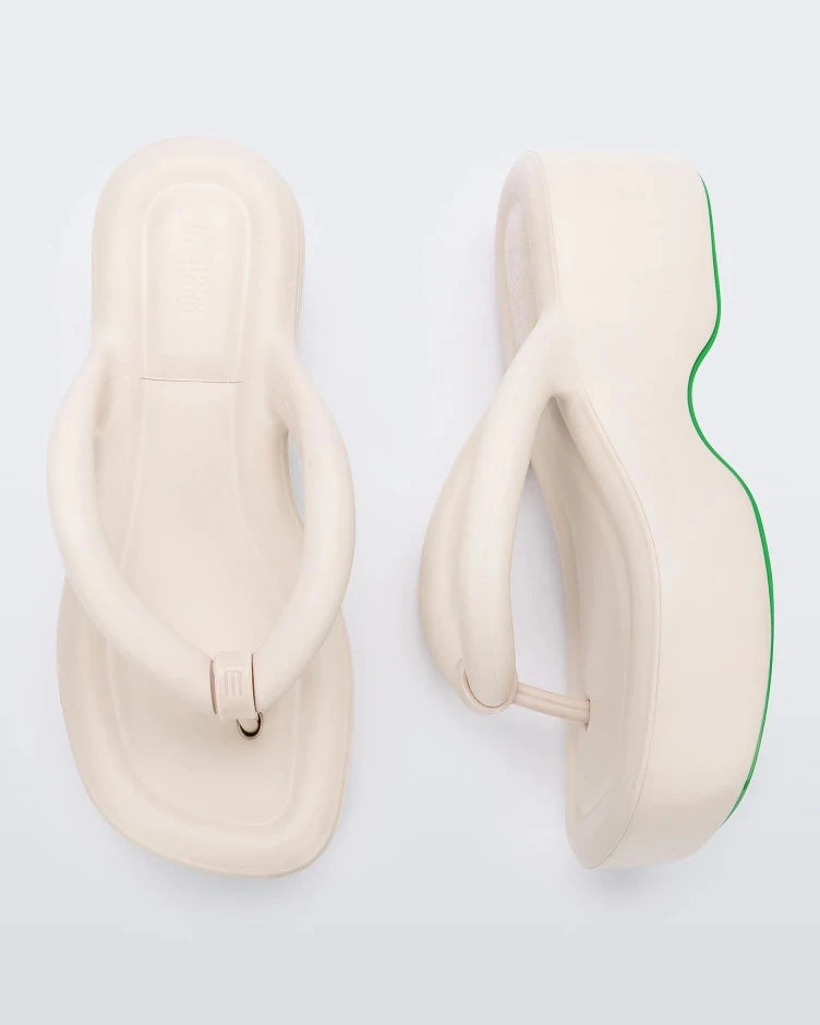 The Melissa Free line represents more than style: it is expression, adventure and environmental awareness. Now, she brings a reinterpretation of the hit Melissa Free Flip Flop, in a platform version full of attitude. The model has a biobased EVA sole made from sugarcane (Melfree), which is light, sustainable and provides maximum comfort.
