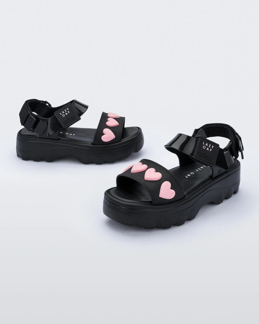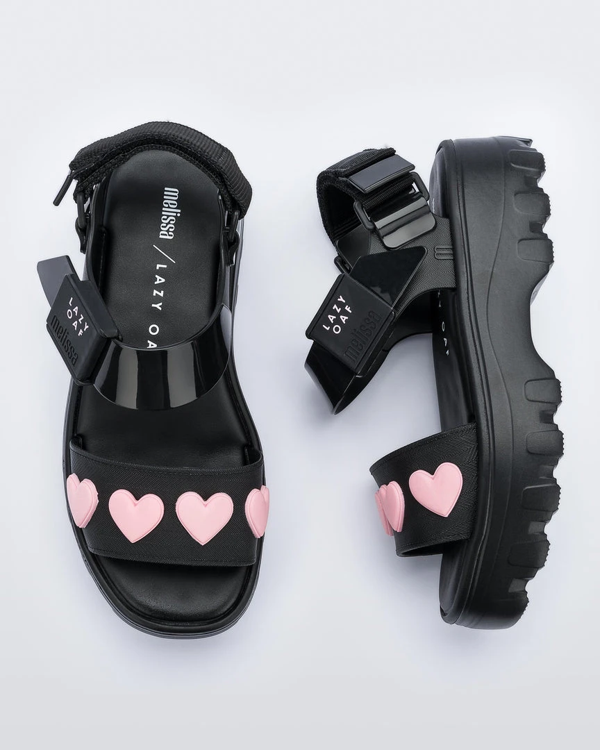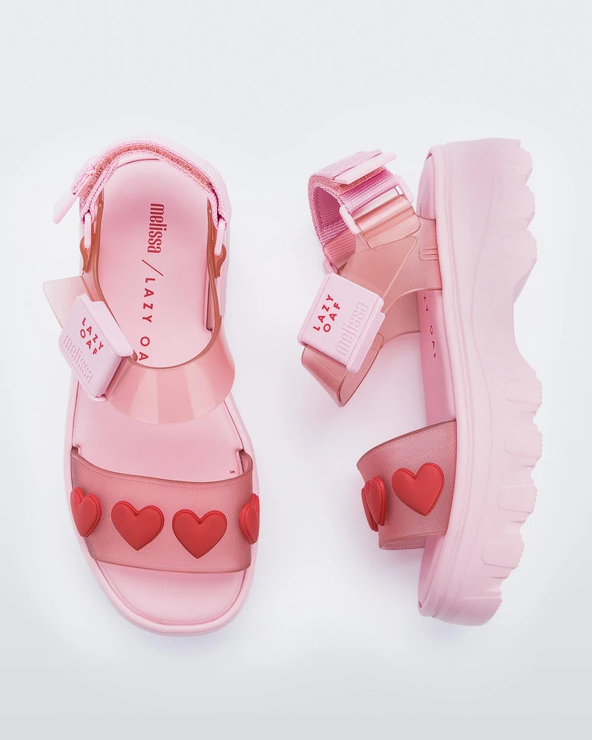 Lazy Oaf is a London based fashion label and they are well-known for their bold colors, graphic prints, and sense of humor. It’s a fun brand that explores nostalgia, so I bet you can already tell it has a lot in common with Melissa. For the capsule collection that we are completely in love with, we are customizing Melissa Kick Off Sandal and Melissa City Bag with cute hearts and daisies, emphasizing both brand’s fun DNA.