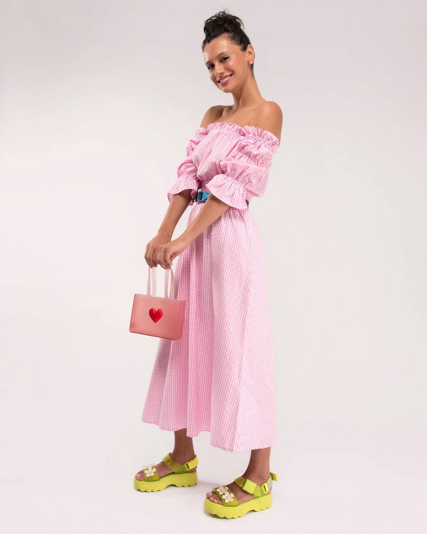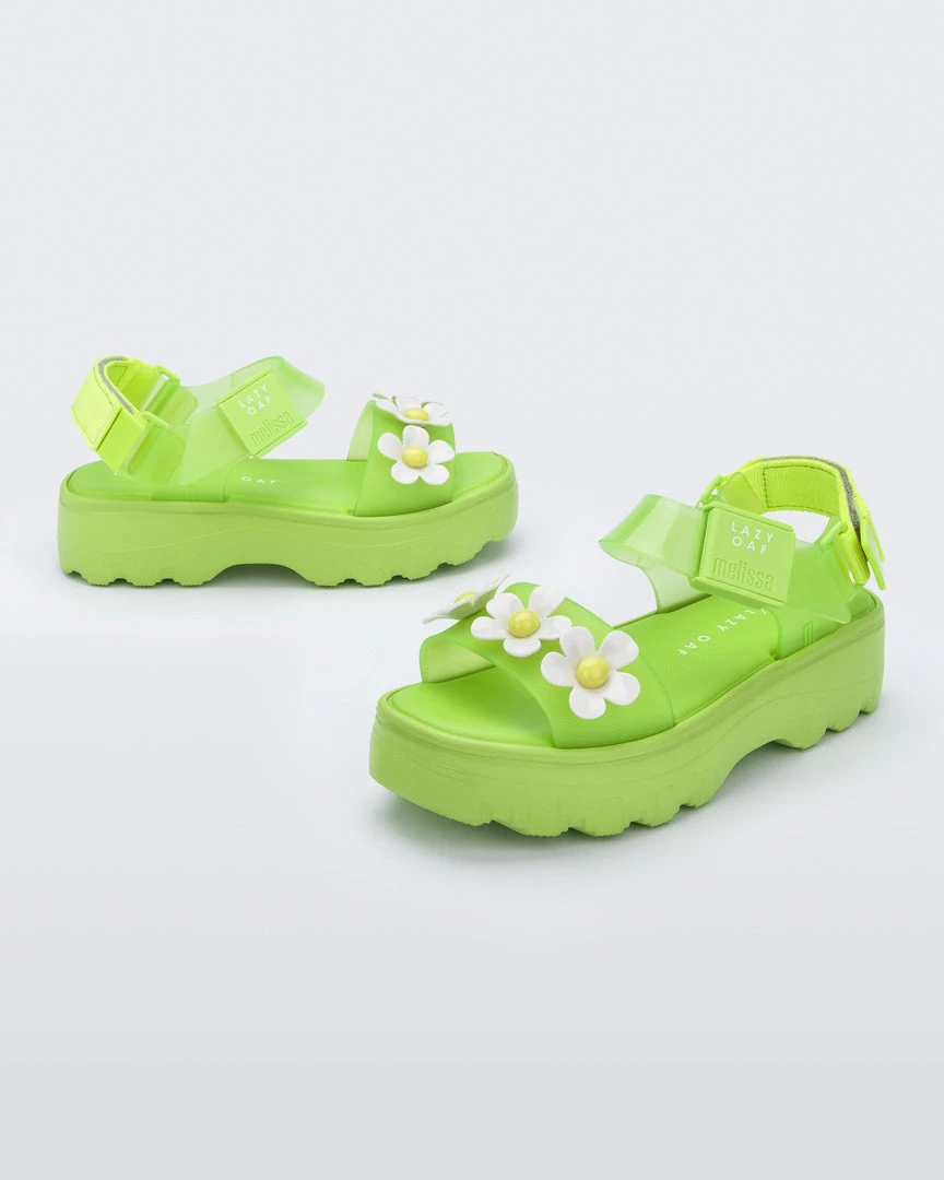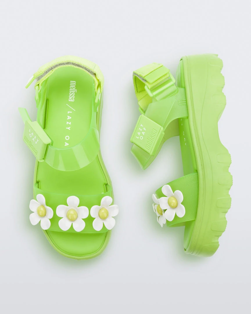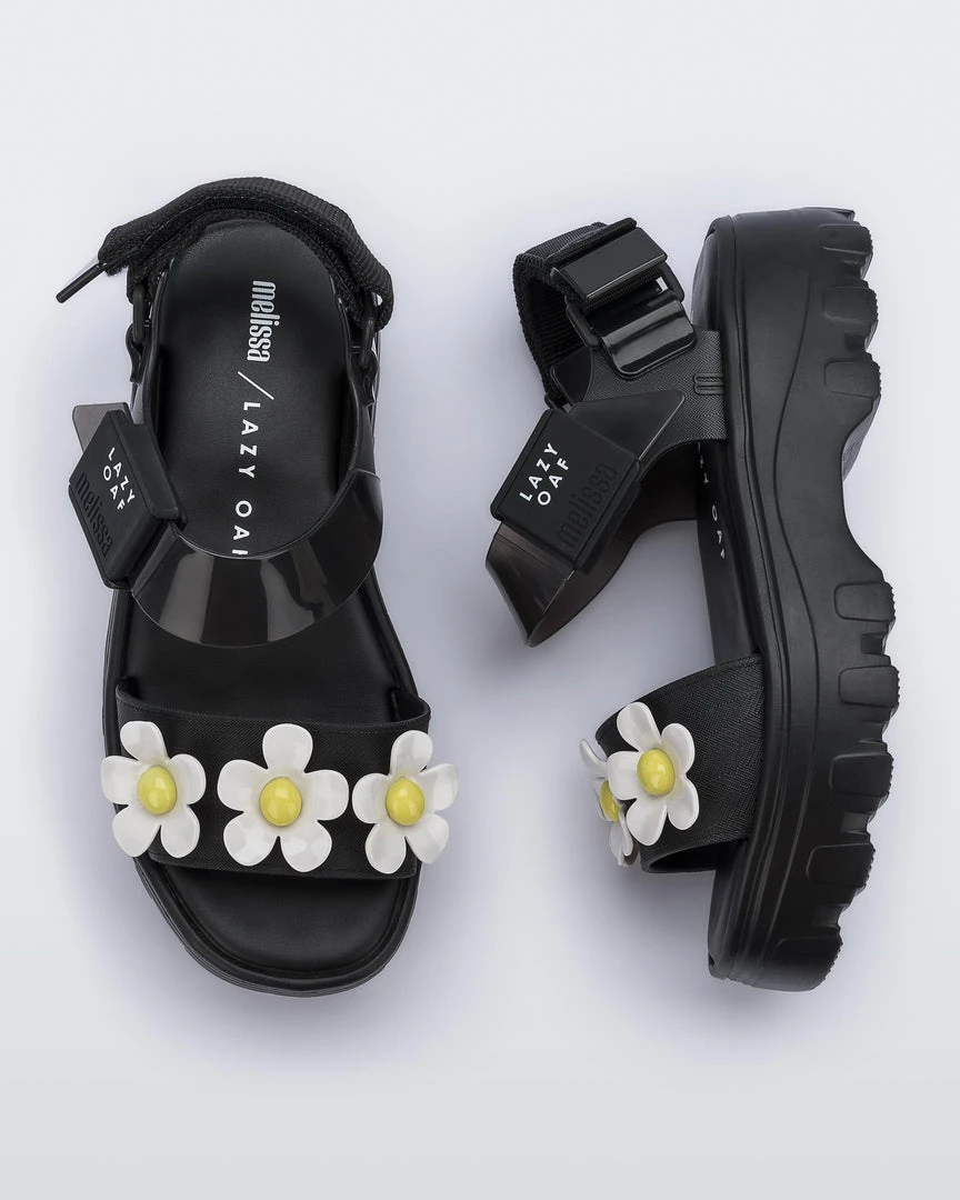 Lazy Oaf is a London based fashion label and they are well-known for their bold colors, graphic prints, and sense of humor. It’s a fun brand that explores nostalgia, so I bet you can already tell it has a lot in common with Melissa. For the capsule collection that we are completely in love with, we are customizing Melissa Kick Off Sandal and Melissa City Bag with cute hearts and daisies, emphasizing both brand’s fun DNA.