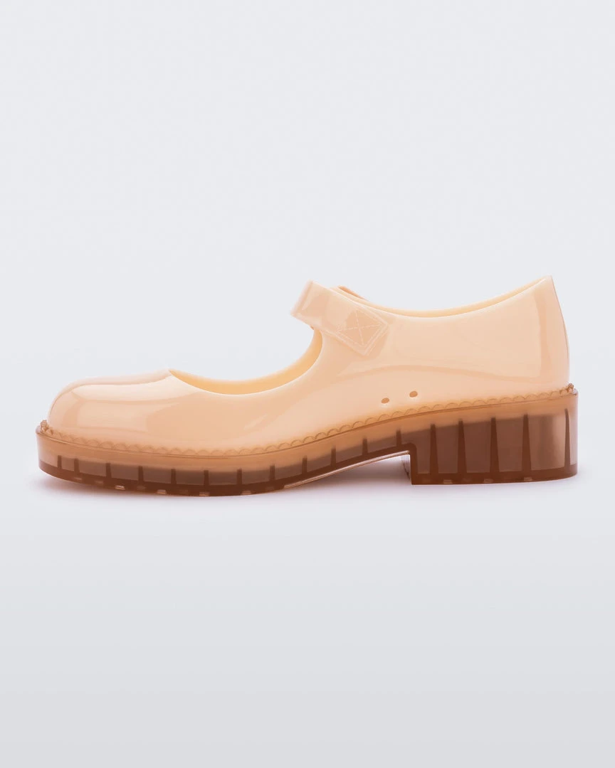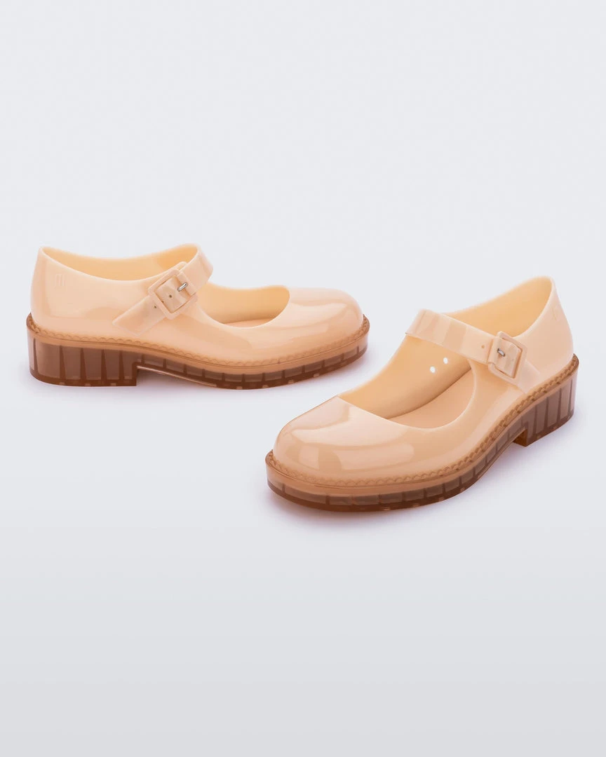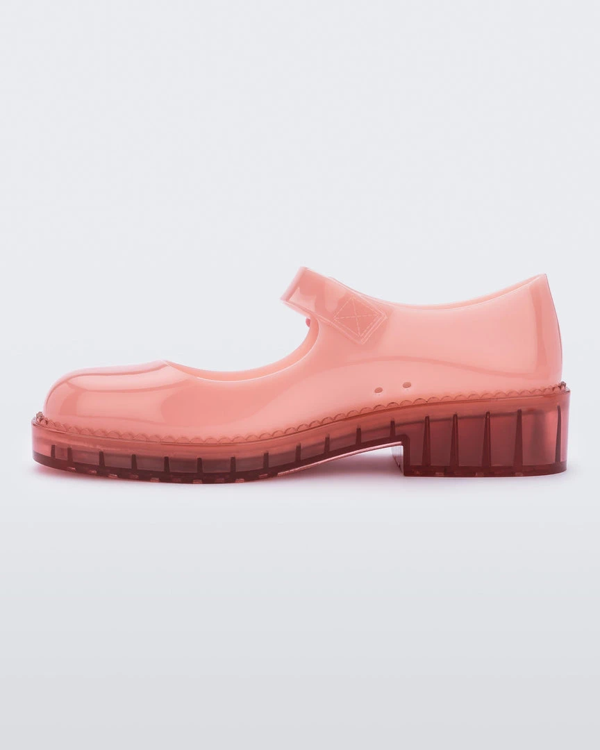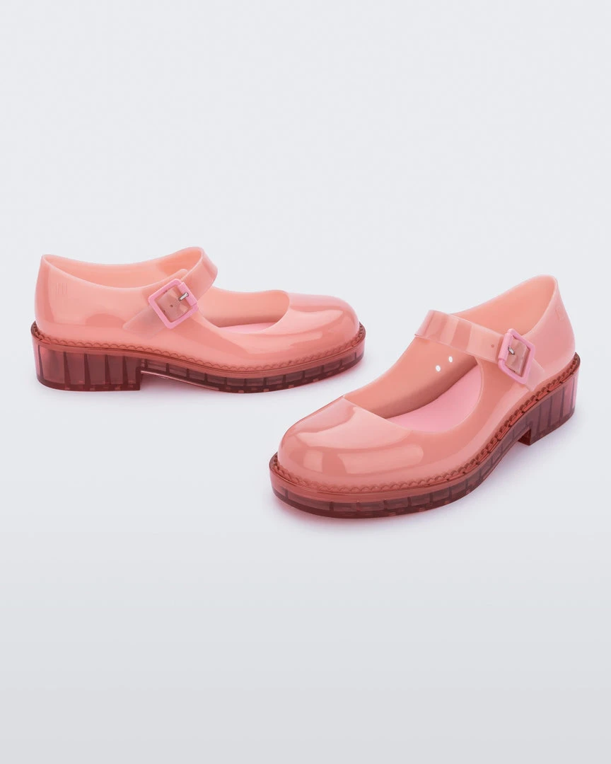 Doll-style shoes have been in the spotlight for over a century. They marked the 60s as a symbol of revolution and liberty and the 90s as a symbol of youth and rebellion. They starred in great film classics and walked on the catwalks of the biggest names in haute couture. The recipe for success is: a rounded toe, a low heel and most importantly, a strap across the instep. This gives rise to a new model with a tutti-frutti scent. The highlight of the Melissa Lola is its transparent sole revealing the weight-reducing technology that makes it so light and comfortable.