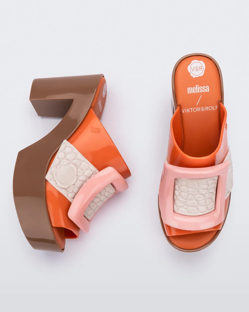 The Melissa Mule from our collaboration with Viktor & Rolf brings a new range of color combinations that only the Melissa universe can offer. This mule has a buckle fastening, providing all the security and stability that a high heel sandal needs. It also has our Grenflex insole for added smoothness and comfort.