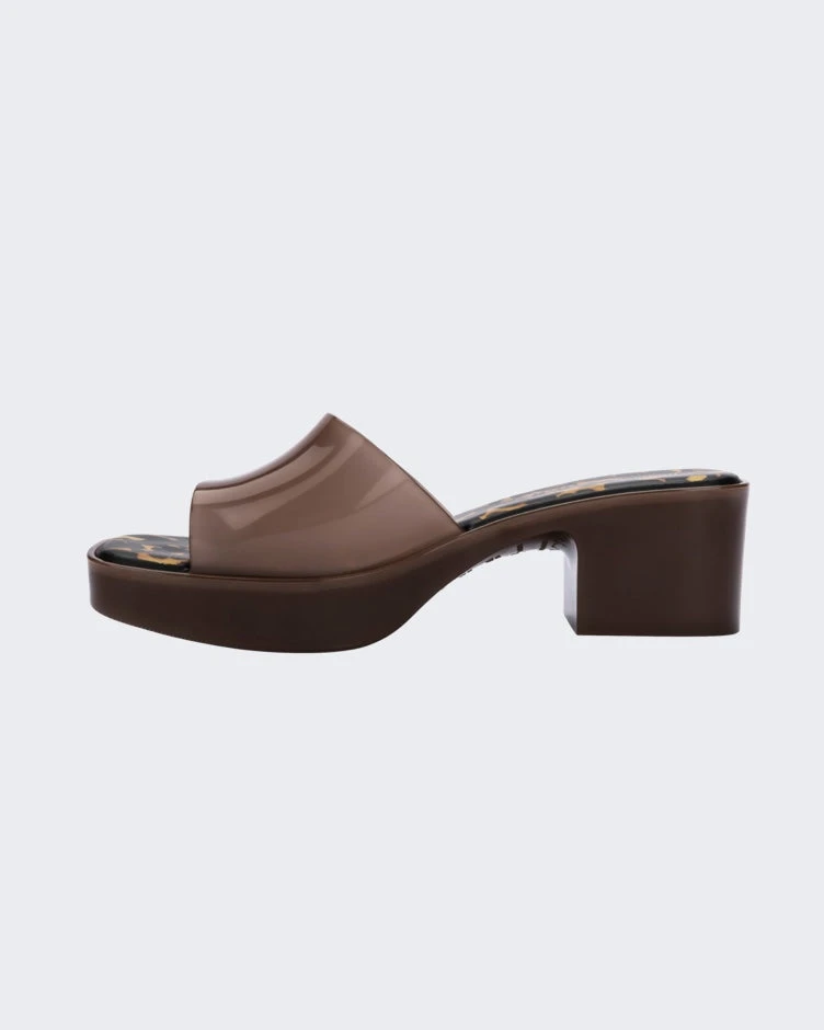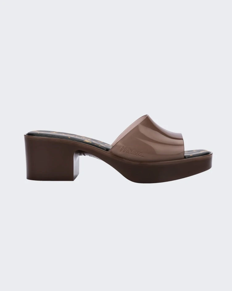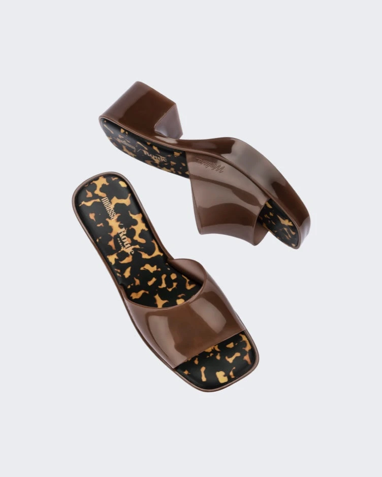 The Melissa Shape + Rouje is an exciting collaboration featuring our open-toe, block heeled shoe with an insole bearing the collaboration’s exclusive brown, tortoise print. With a translucent upper, this new shoe has a retro vibe and combines Melissa’s DNA with the unique design of the brand that turns French women’s lifestyle into exciting items.
