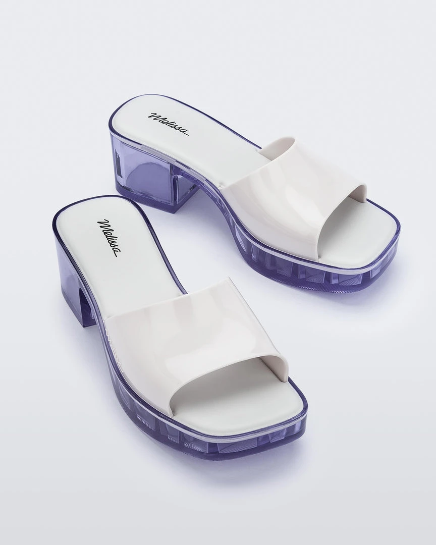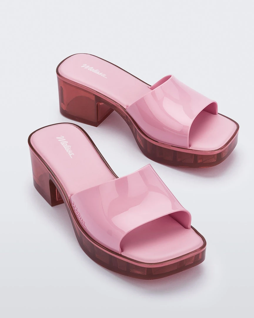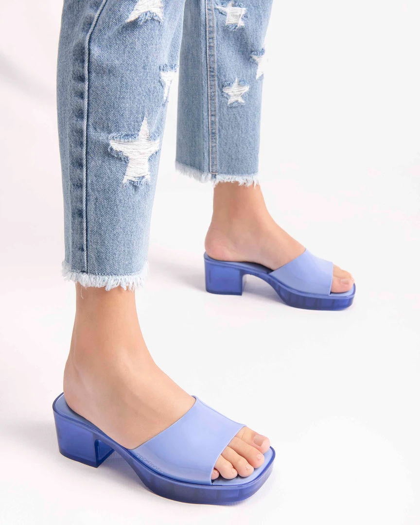 Modelled on the sandals that defined the 90’s and early 00’s, the Melissa Shape is the new must-have for anyone looking to impress with a girly, yet cool look. The new Melissa Shape is comfortable and has the popular square toe with a low block heel. A main feature is the transparent sole which is a tribute to Melissa s pure DNA where structure, lightness and technology become a hype feature of style.