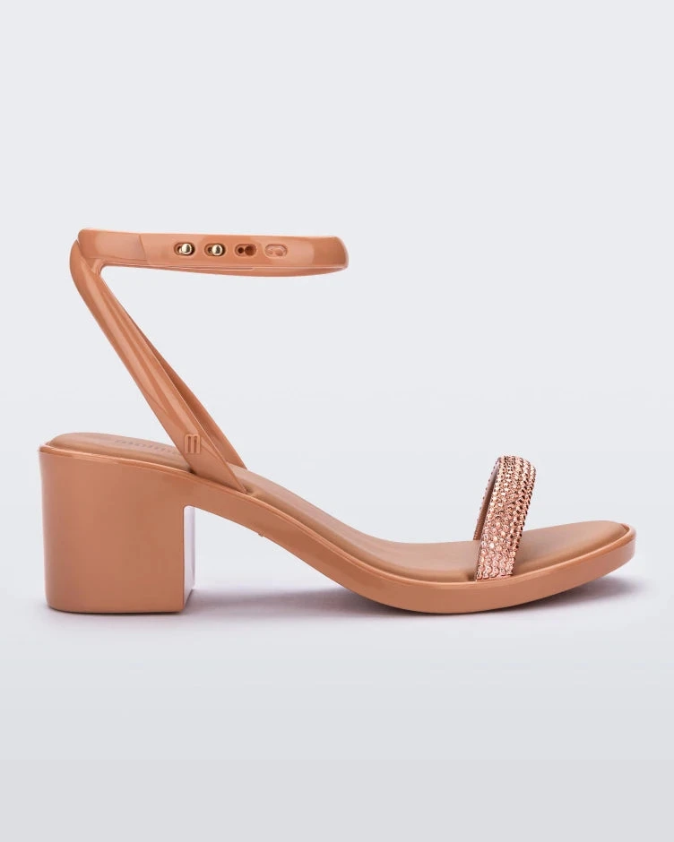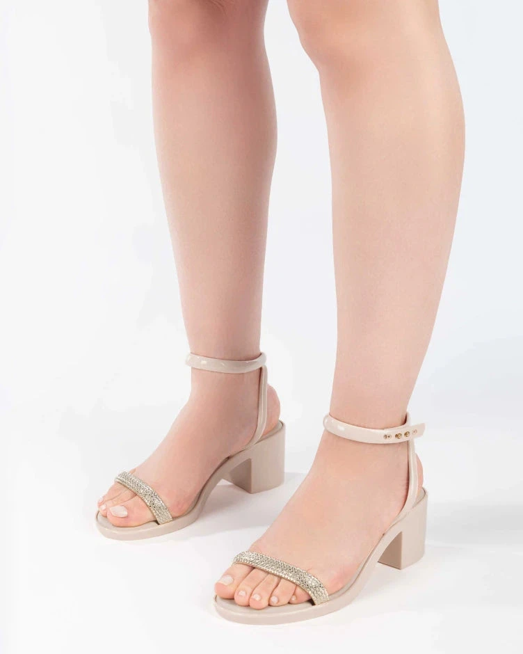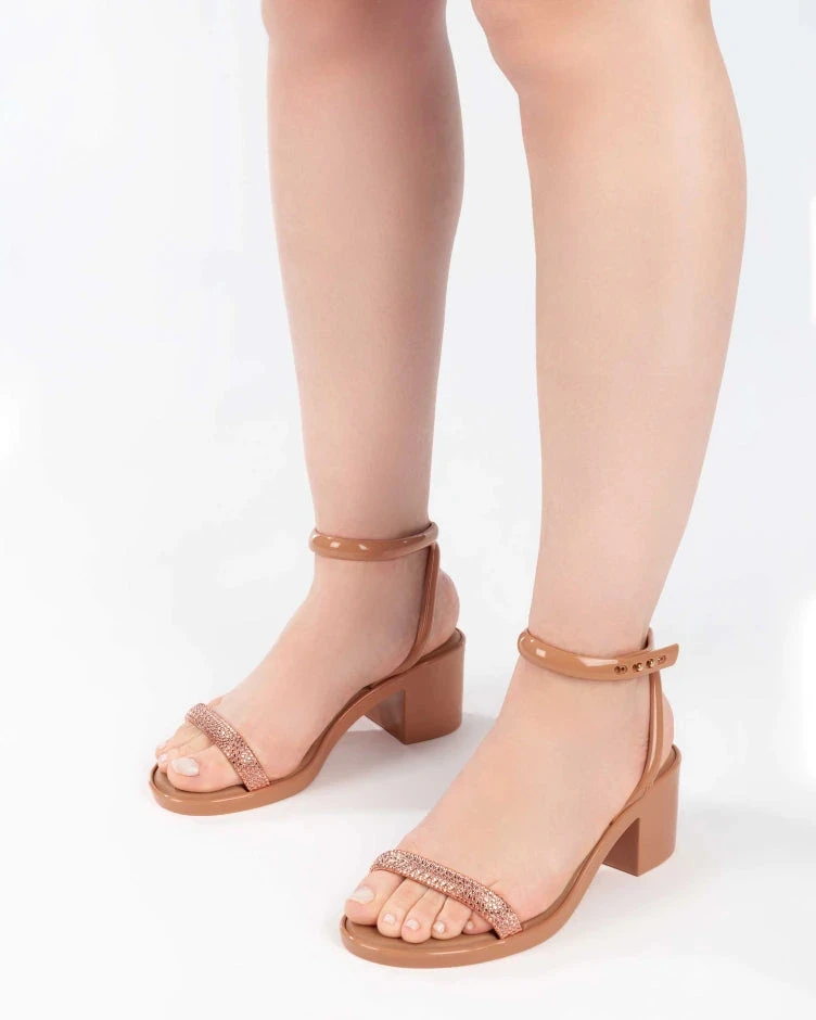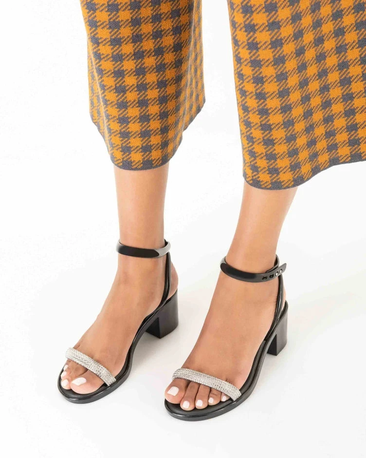 The block sandal is a classic that never loses its shine, it is the perfect accessory for festivities and reflects the trends of the season. Shiny Heel has a shiny strip and a comfy insole, making the model even more stylish.