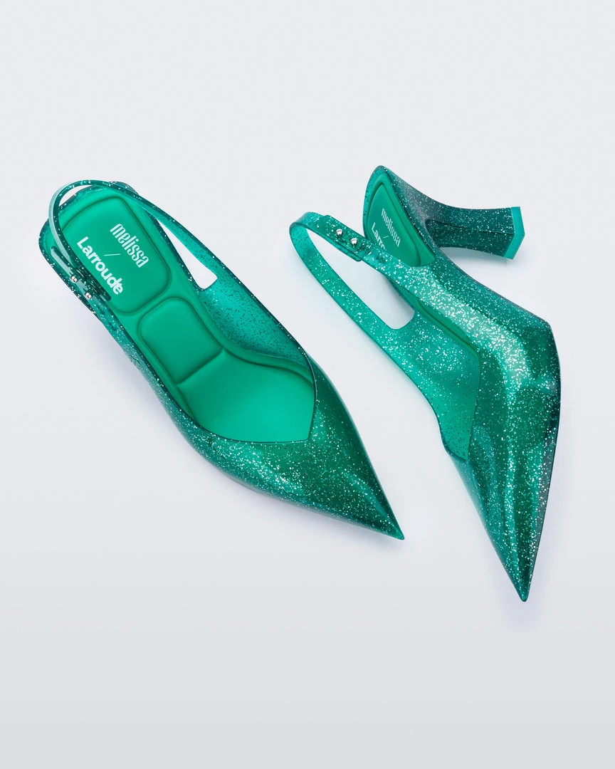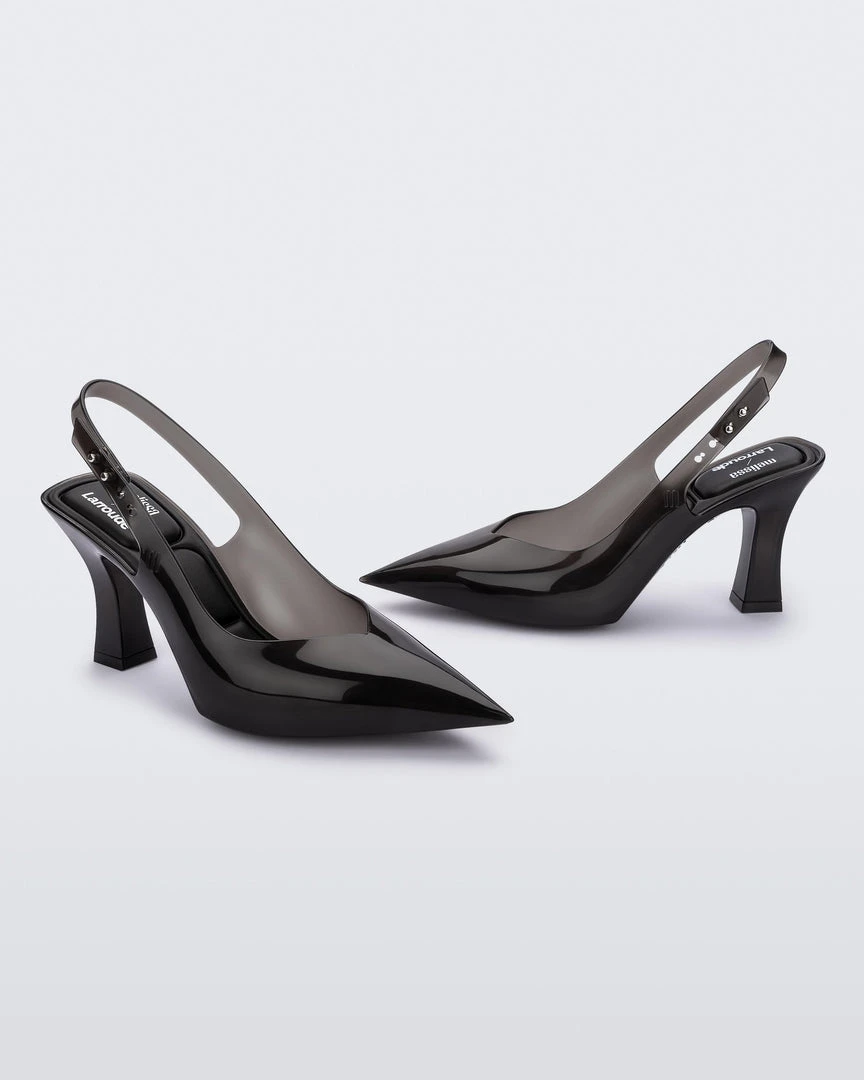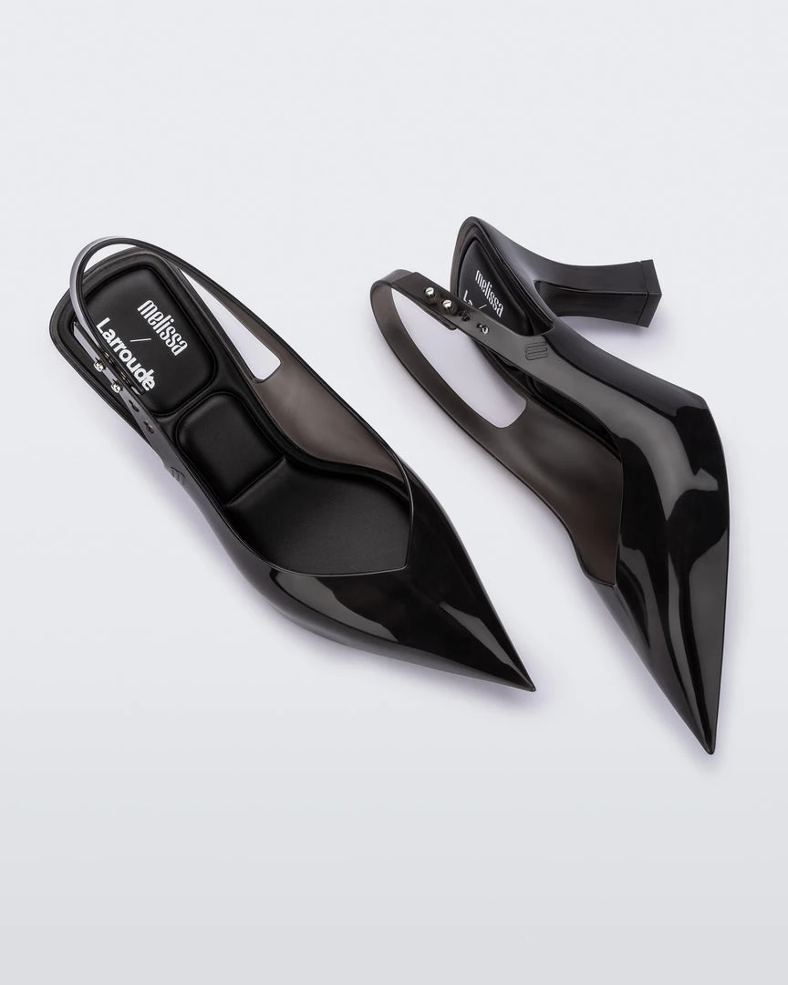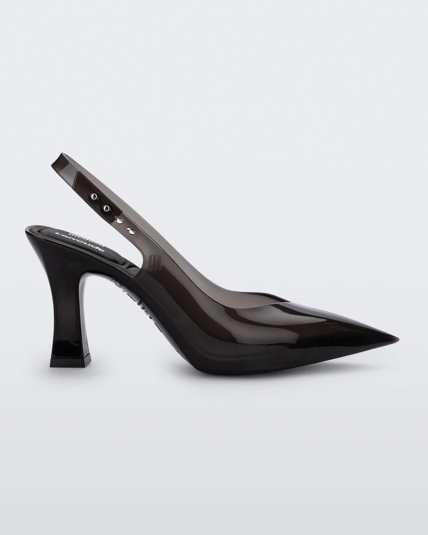 Our Melissa + Larroudé collaboration brings another unprecedented shape to the Melissa universe. Feminine, imposing, and daring, the Melissa Slingback Heel has a transparent, glass-like effect.