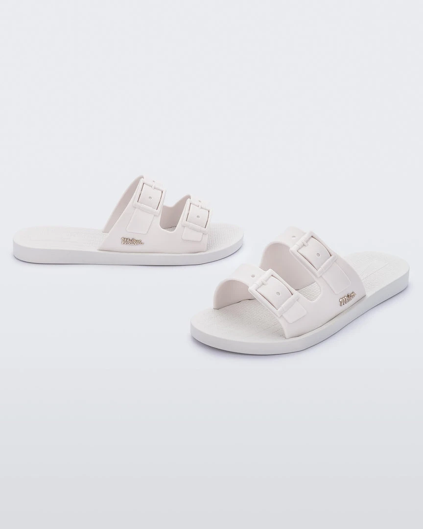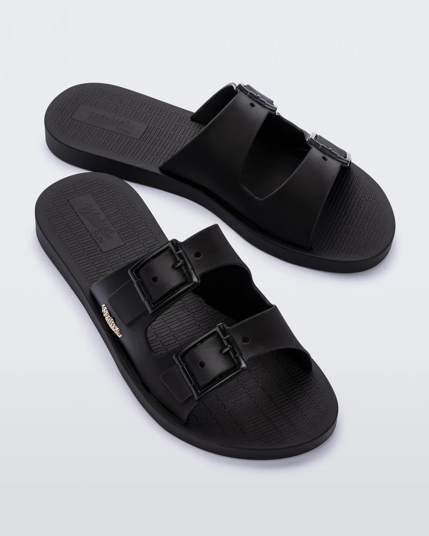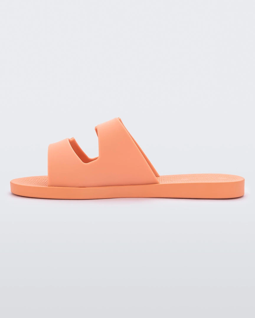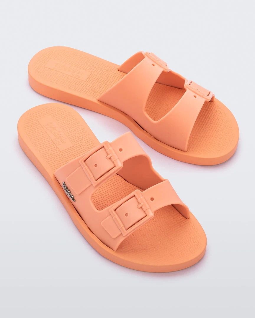 To celebrate the hottest, most lively and colourful season of the year, we have created a new family of super cool Melissas to match the sunny season. The Melissa Sun Malibu slide is versatile and perfect for any outfit. A new feature is a unique beach mat texture. There is a broad colour palette ranging from neutral and timeless colours to vibrant versions with lots of transparency and Melissa’s DNA.