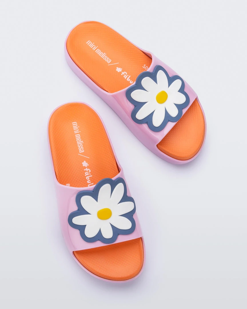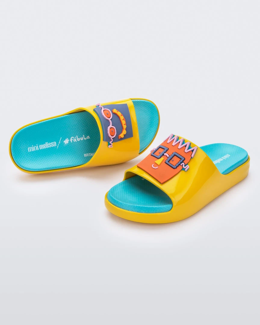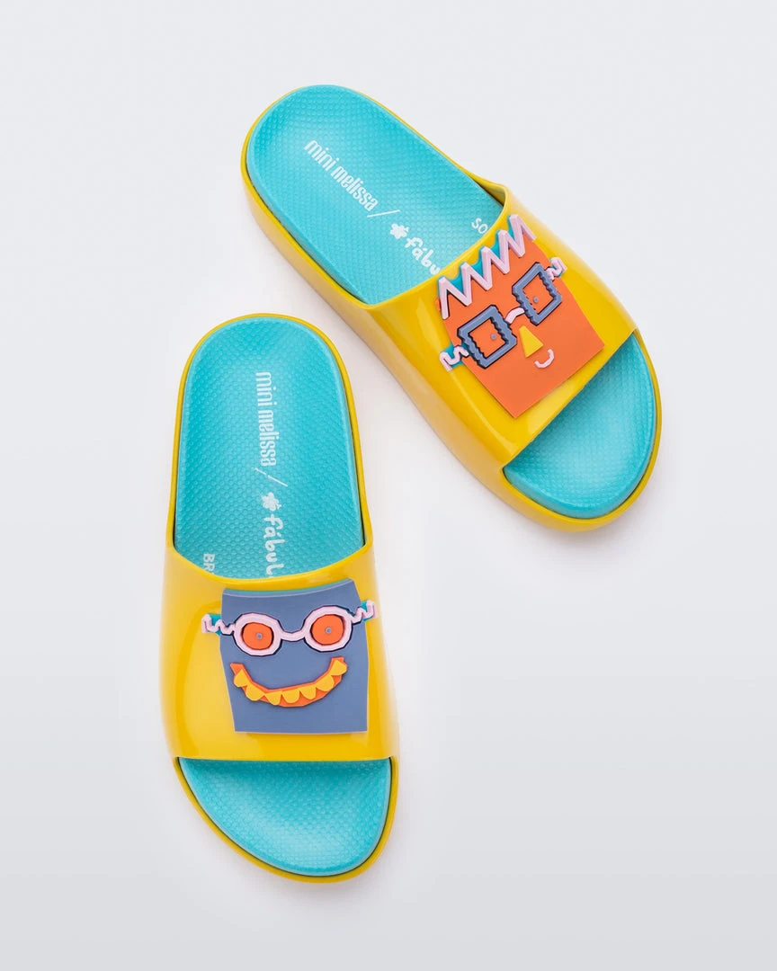 A new collab has arrived in the Mini Melissa universe, bringing creativity and imagination to the maximum level. Mini Melissa + Fábula features illustrated prints with images and characters where a thousand stories happen. The imagination takes shape in a world of fun and adventures. The Mini Melissa Cloud Slide is a classic model with playful colors and applications, perfect for creating different looks! <3