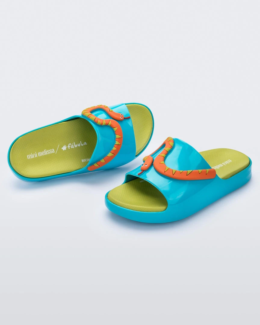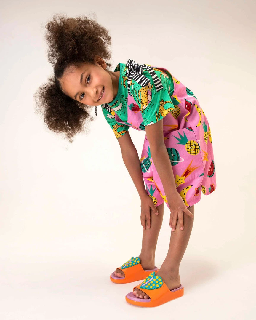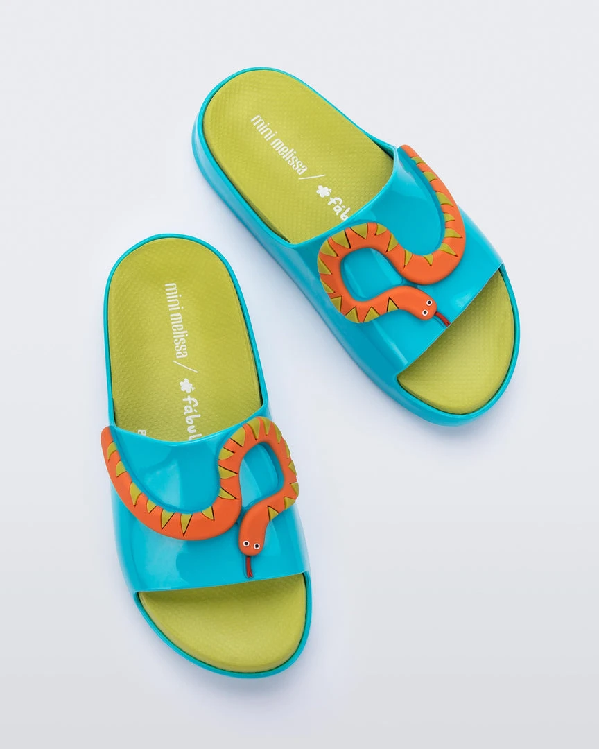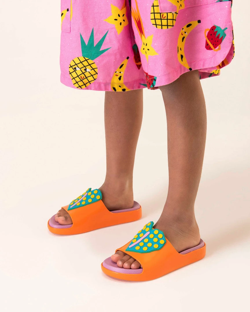 A new collab has arrived in the Mini Melissa universe, bringing creativity and imagination to the maximum level. Mini Melissa + Fábula features illustrated prints with images and characters where a thousand stories happen. The imagination takes shape in a world of fun and adventures. The Mini Melissa Cloud Slide is a classic model with playful colors and applications, perfect for creating different looks! <3