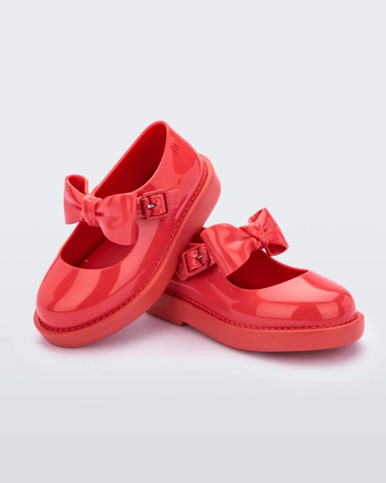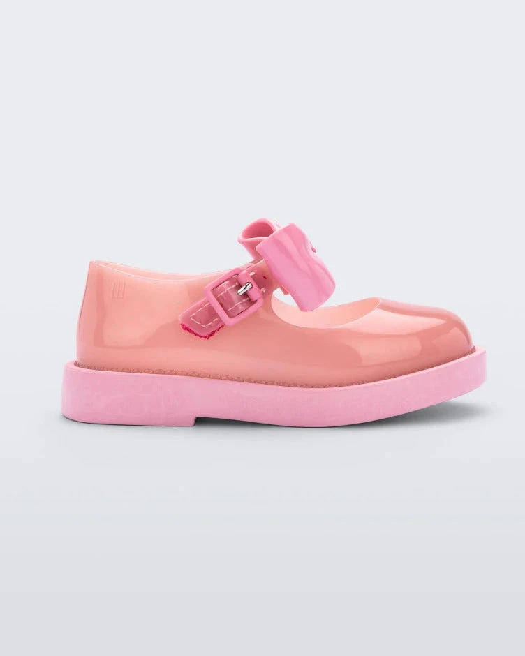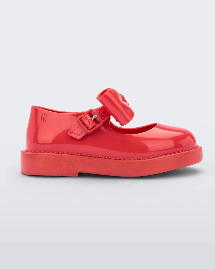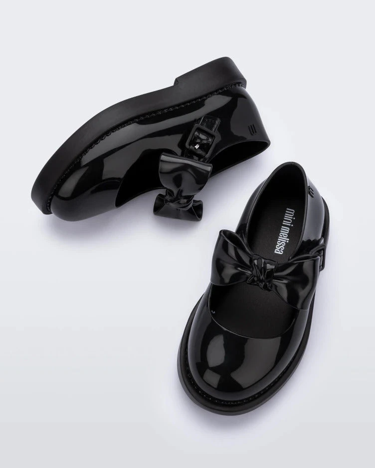 The new Mini Melissa Lola has arrived <3 This adorable flat features a rounded toe and a Melflex bow on the front strap. The velcro closure looks like a buckle and is perfect for any occasion, whether off to school, the playground, or a party!