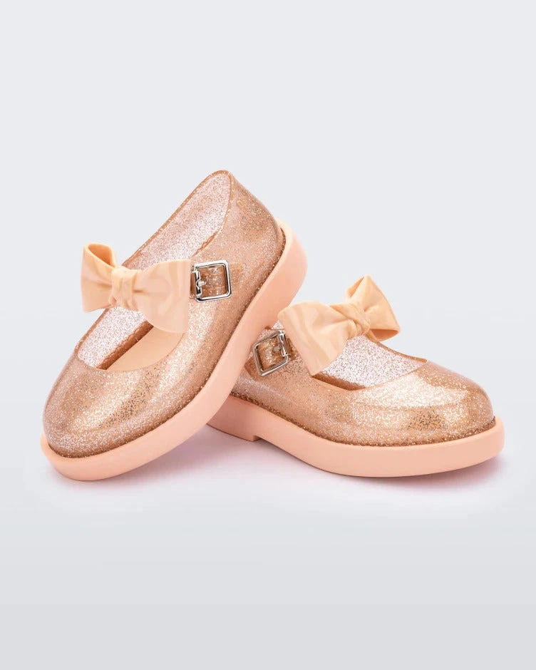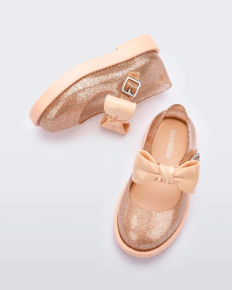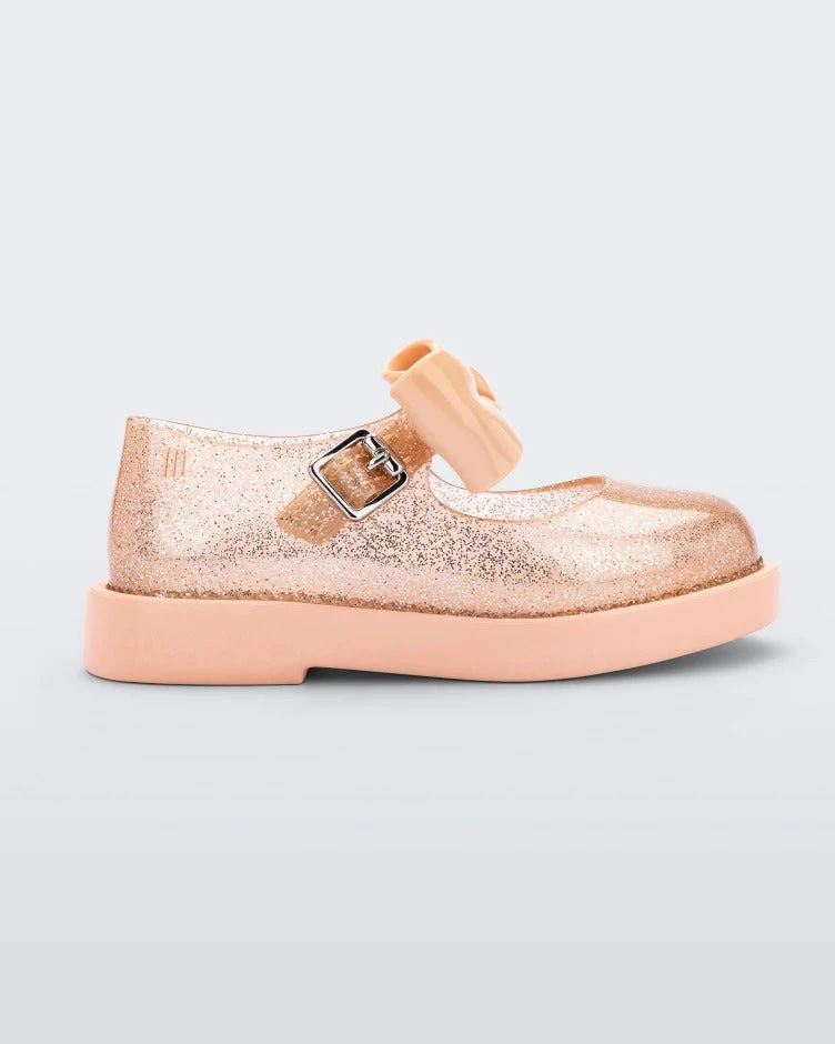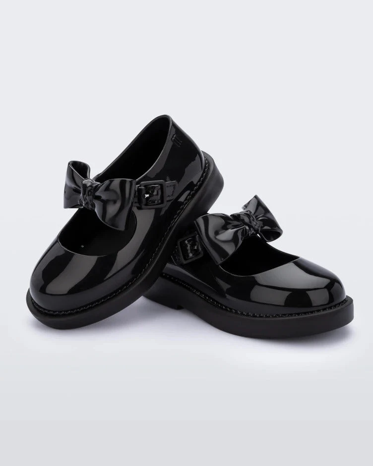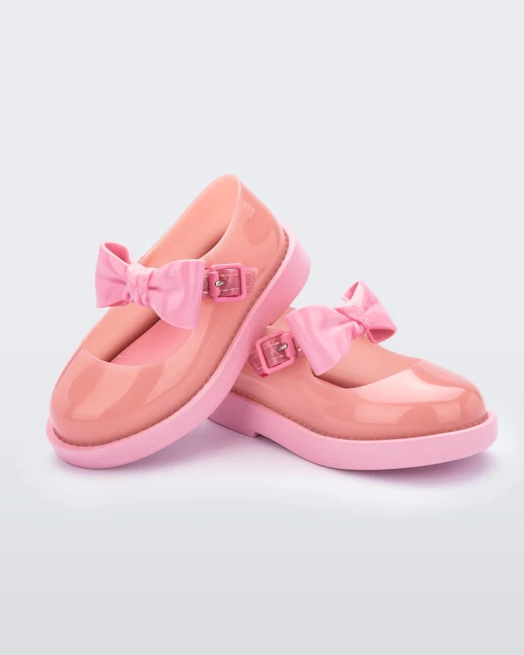 The new Mini Melissa Lola has arrived <3 This adorable flat features a rounded toe and a Melflex bow on the front strap. The velcro closure looks like a buckle and is perfect for any occasion, whether off to school, the playground, or a party!