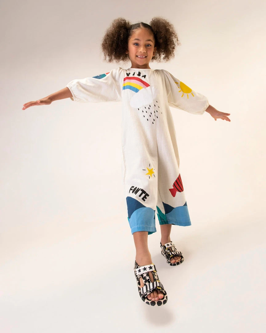 The Mini Melissa + Fábula collab brings illustrated prints with images and characters where a thousand stories take place. The imagination takes shape in a world full of fun and adventures. The Mini Melissa Ping Pong is a papete silhouette with an EVA sole, which guarantees lightness and comfort for the best times.