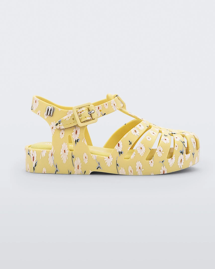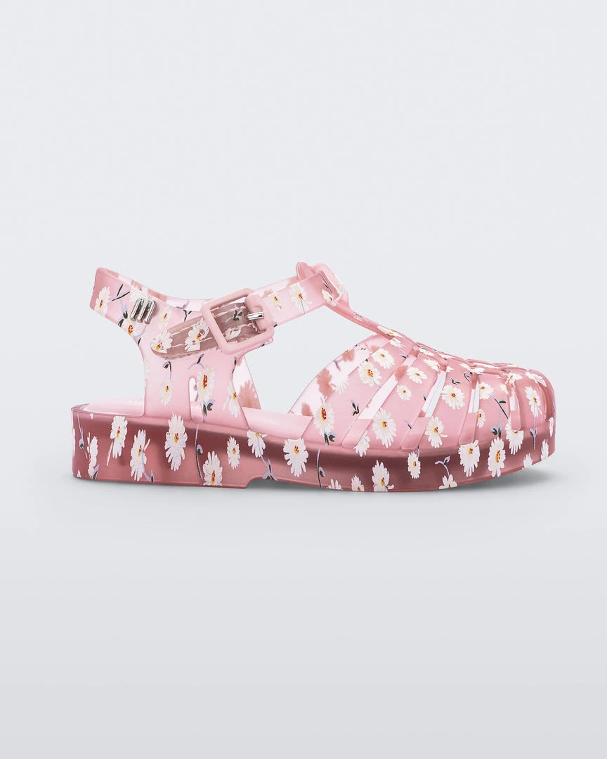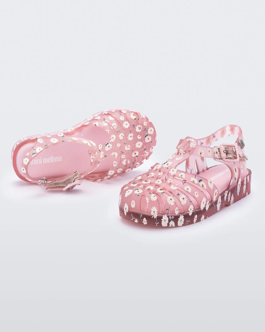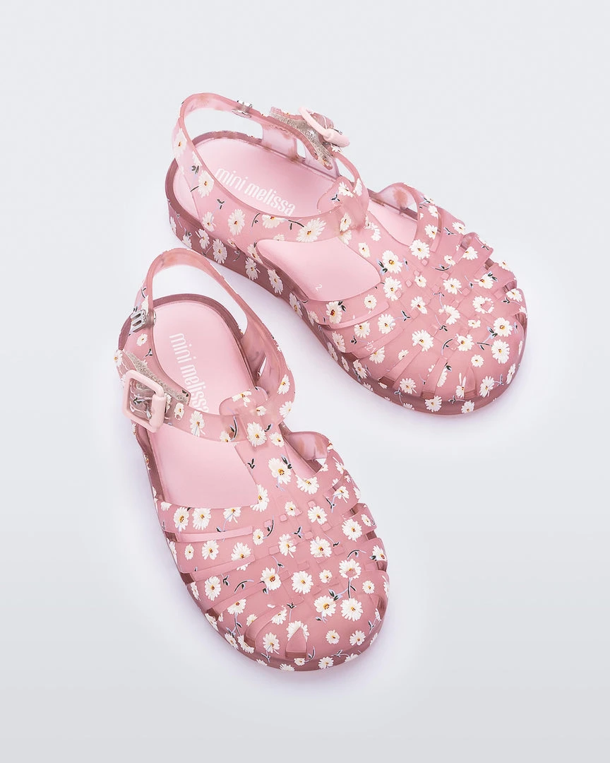 One of Melissa’s most iconic silhouettes comes in a mini version. The Mini Melissa Possession Print gets new colors and prints with a cool, timeless, and versatile touch. The 3DB daisy and splashed paint prints are ideal for all sorts of adventures. Available in pastel colors, marine blue, and translucent pink, the Mini Melissa Possession Print can be worn with or without socks and spark creativity in all!