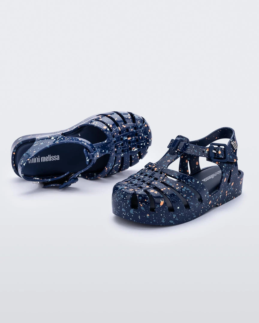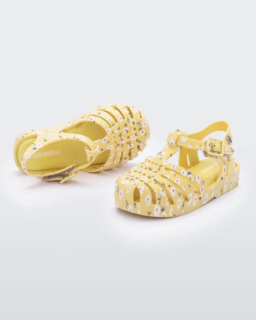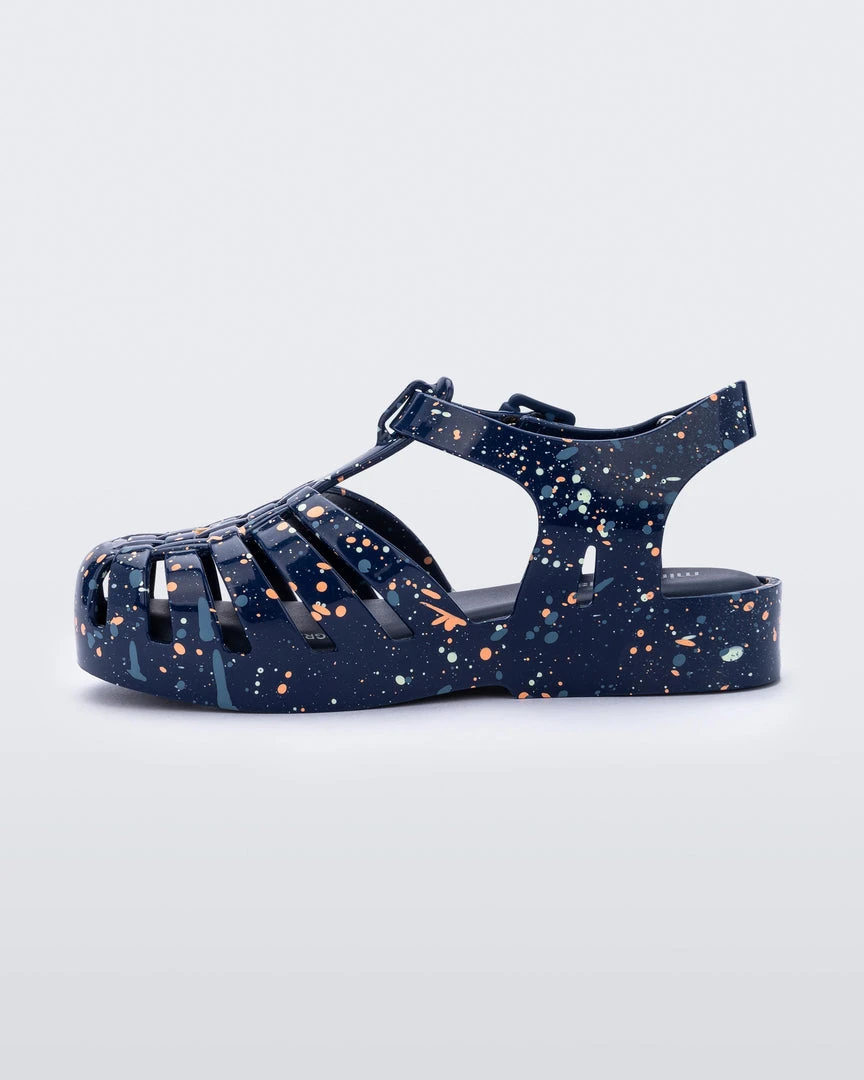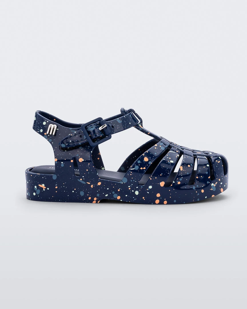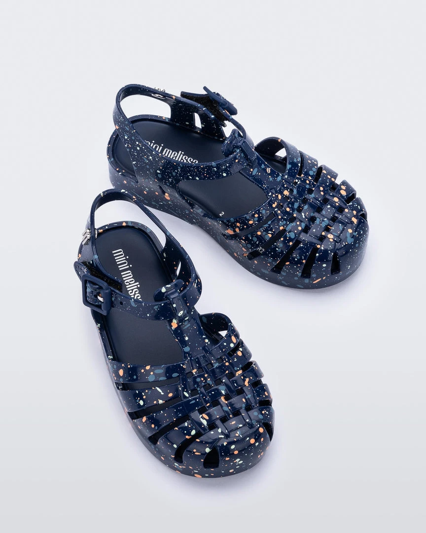One of Melissa’s most iconic silhouettes comes in a mini version. The Mini Melissa Possession Print gets new colors and prints with a cool, timeless, and versatile touch. The 3DB daisy and splashed paint prints are ideal for all sorts of adventures. Available in pastel colors, marine blue, and translucent pink, the Mini Melissa Possession Print can be worn with or without socks and spark creativity in all!