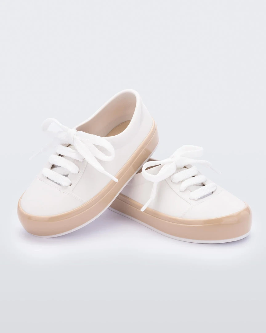 Melissa Street, those successful sneakers on the shelves of the adult world, are now invading the kids’ scene. The sneaker follows the footsteps of sporty looks, giving it a cool and modern approachl.