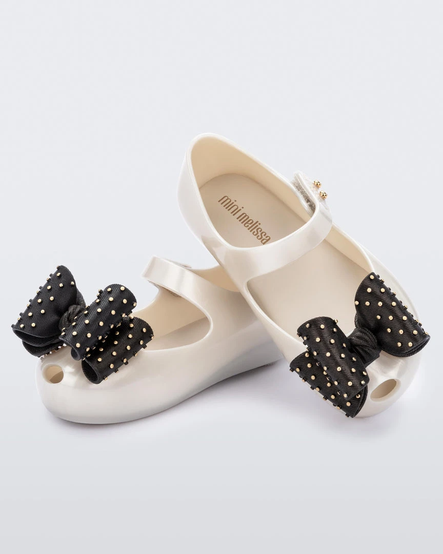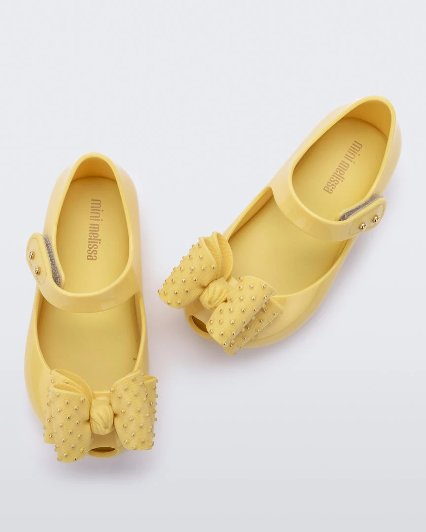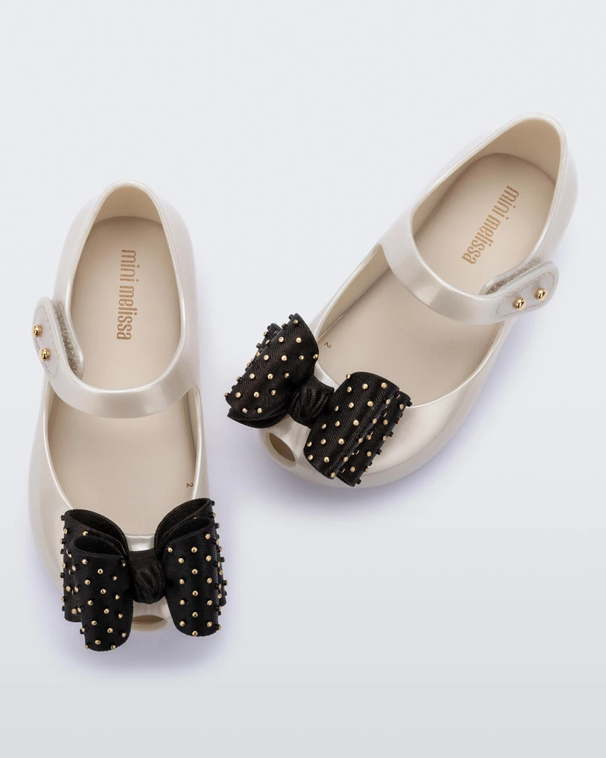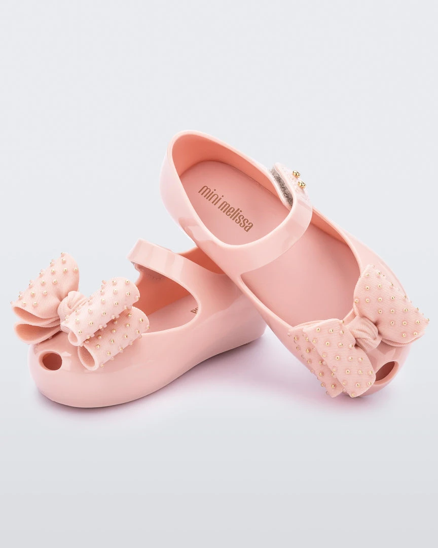 The beloved Mini Melissa Ultragirl Sweet is back with a new version where its traditional oversized bow is printed in 3D laser, giving it the appearance of a fabric texture. The bow is rendered even more feminine and delicate with the application of gold hot stamps on its surface. In the colour palette, the candy colours stand out, favourites of the moment.
