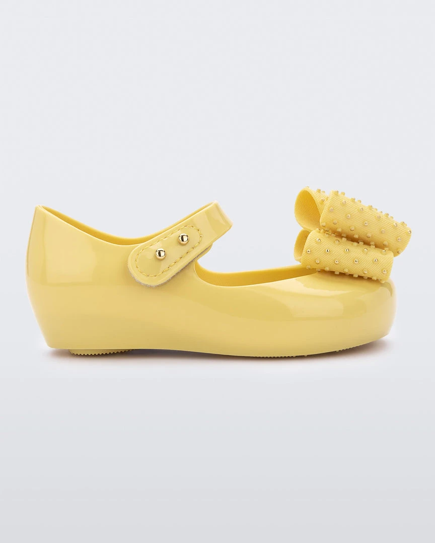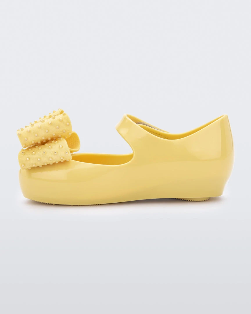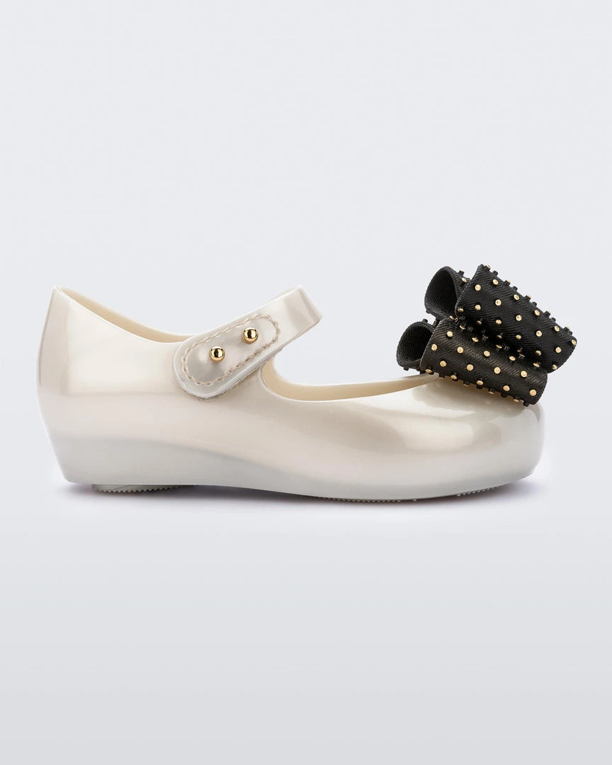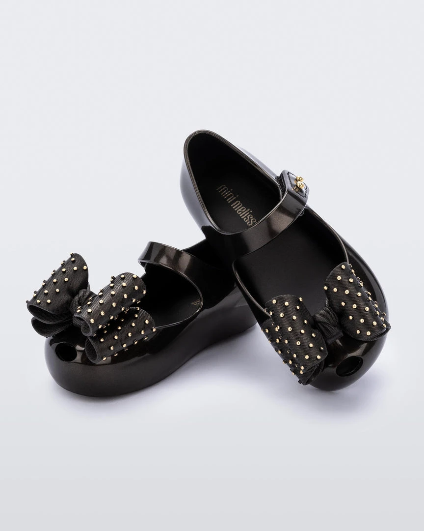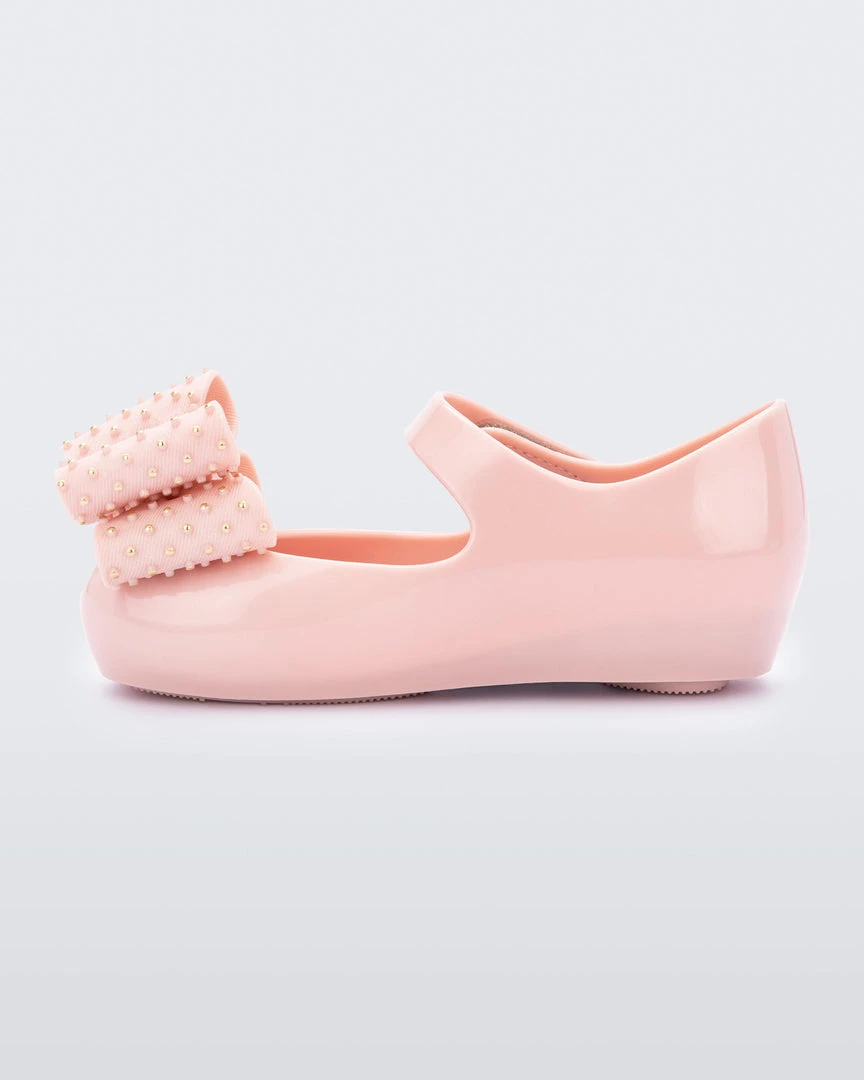 The beloved Mini Melissa Ultragirl Sweet is back with a new version where its traditional oversized bow is printed in 3D laser, giving it the appearance of a fabric texture. The bow is rendered even more feminine and delicate with the application of gold hot stamps on its surface. In the colour palette, the candy colours stand out, favourites of the moment.
